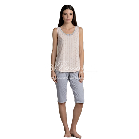 Lingery Pigiama Capri senza Maniche in Cotone Jersey da Donna 3091 2504S44