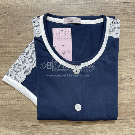 Lingery Camicia da Notte Maniche Corte in Jersey di Cotone Aperta 9159 2504S30