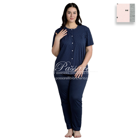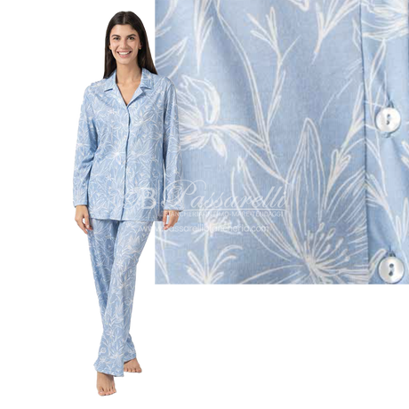 Lingery Pigiama Maniche Corte Aperto con Pantalone Lungo da Donna 731 2504S40