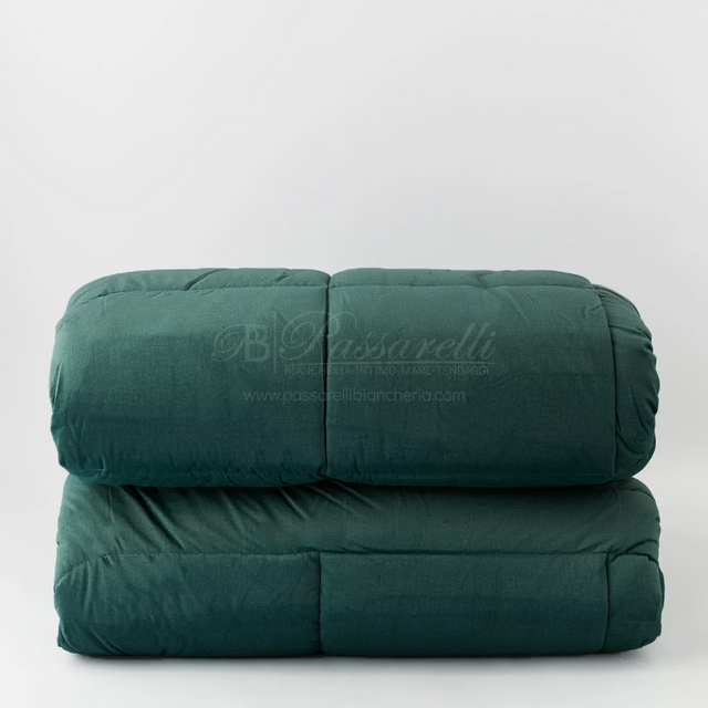 La trapunta ha un'imbottitura di 350gr 100% poliestere, fronte in velluto e retro in 100% cotone.