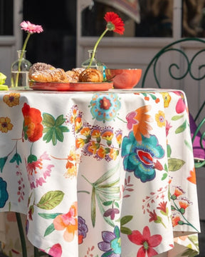 La tovaglia CAREL è un dipinto d'estate su una tela di cotone, perfetta per i pranzi all'aperto o le colazioni profumate di caffè.