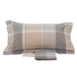 Completo lenzuola scozzesi realizzato in percalle di cotone tinto filo 200 T.C. Il lenzuolo sopra e le federe a 3 volant sono in fantasia scozzese, mentre il lenzuolo sotto con angoli è in tinta unita. Vesti la tua camera da letto con lo stile e la qualità inconfondibile di Tessitura Randi