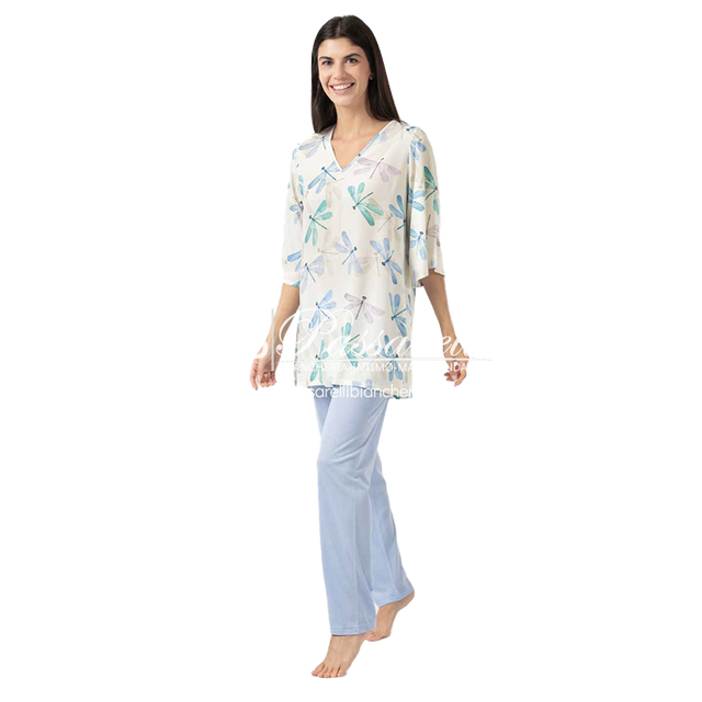 Casacca Fantasia in fondo chiaro e fantasia di libellule a maniche 3/4