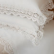 Completo letto in puro cotone 100% con applicazione di elegante pizzo in tulle ricamato. Realizzato artigianalmente.