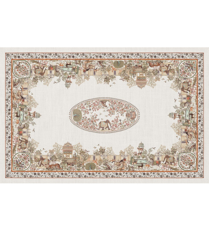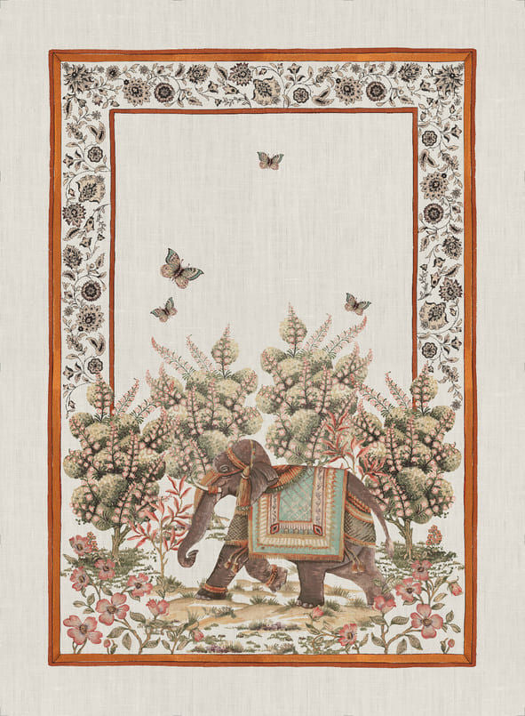 Realizzata in puro lino, racconta storie silenziose di templi lontani, cupole dorate e villaggi incantati dove il tempo scorre lentamente.